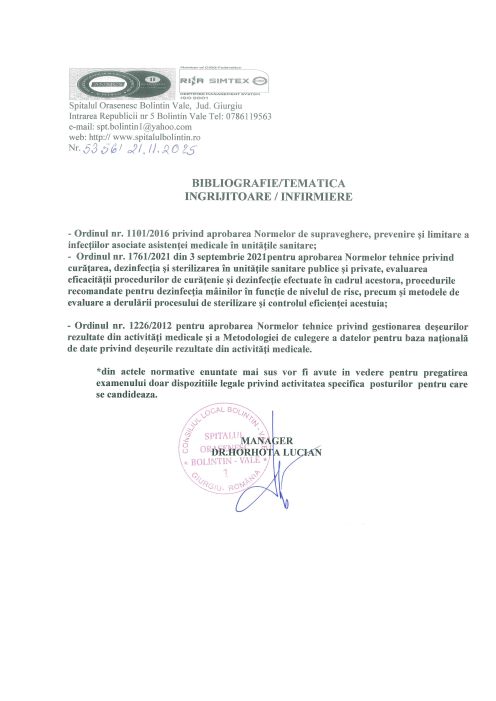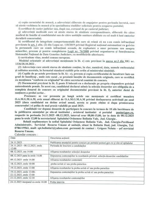 Spitalul Orasenesc Bolintin Vale, este amplasat in zona de nord a judetului Giurgiu. Profilul de activitate al spitalului este asistenta medicala spitaliceasca continua si de zi pentru pacienti de tip acut si asistenta medicala ambulatorie specialitati clinice si paraclinice, deservind o populatie de circa 90 mii locuitori, dispersati pe raza a 15 localitati. Regimul de lucru este de 24 ore/zi, 365 zile/an...