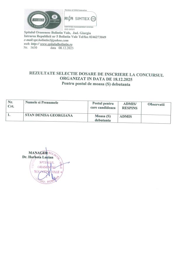 Post ramas vacant prin nepezentare candidat.
