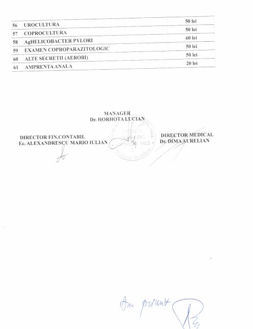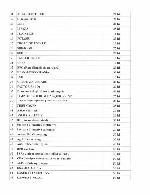 Tarife servicii si analize la cerere cu plata